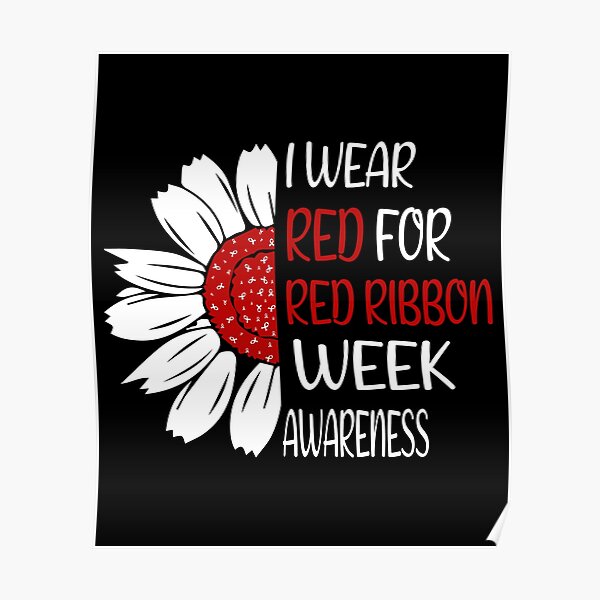 Sunflower In October I Wear Red Ribbon Week Awareness Poster For Sale By Designstoretess Redbubble